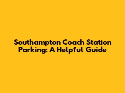 Southampton Coach Station Parking: A Helpful Guide