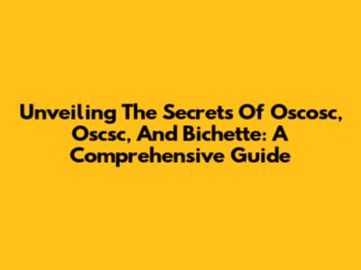 Unveiling The Secrets Of Oscosc, Oscsc, And Bichette: A Comprehensive Guide