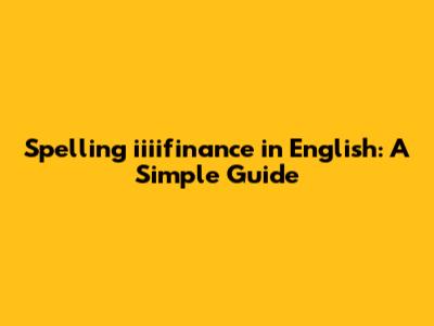 Spelling Iiiifinance Correctly: A Simple Guide