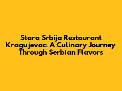Stara Srbija Restaurant Kragujevac: A Culinary Journey