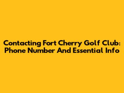 Contacting Fort Cherry Golf Club: Phone Number And Essential Info