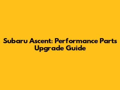 Subaru Ascent: Performance Parts Upgrade Guide