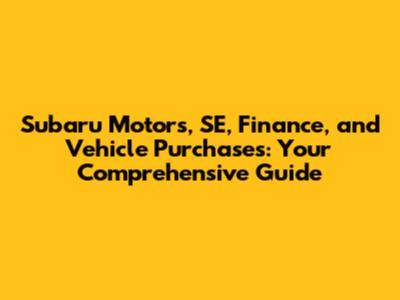 Subaru Motors, SE, Finance And Vehicle Purchases