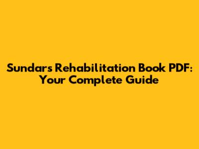 Sundar's Rehabilitation Book PDF: Your Complete Guide