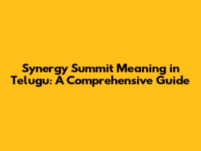 Synergy Summit Meaning In Telugu: A Comprehensive Guide