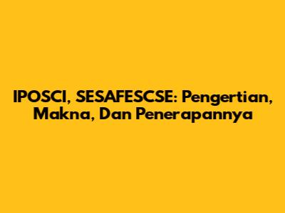 IPOSCI, SESAFESCSE: Pengertian, Makna, Dan Penerapannya
