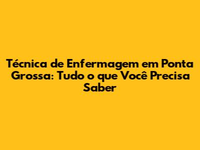 Técnica De Enfermagem Em Ponta Grossa: Guia Completo E Atualizado