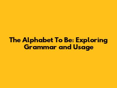 The Alphabet 'To Be': Exploring Grammar And Usage