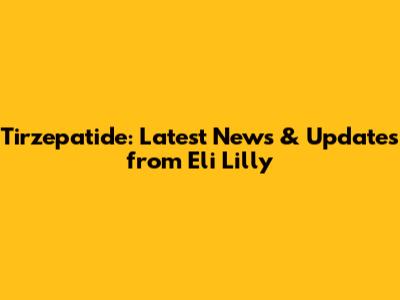 Tirzepatide: Latest News & Updates From Eli Lilly