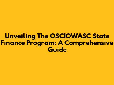 Unveiling The OSCIOWASC State Finance Program: A Comprehensive Guide