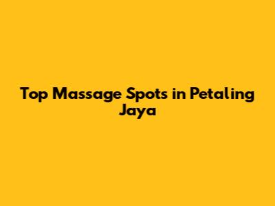 Top Massage Spots In Petaling Jaya