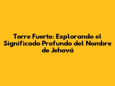 Torre Fuerte: Explorando El Significado Profundo Del Nombre De Jehová