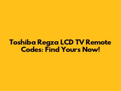 Toshiba Regza LCD TV Remote Codes: Find Yours Now!
