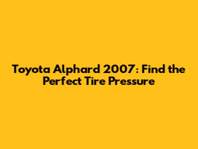 Toyota Alphard 2007: Find The Perfect Tire Pressure