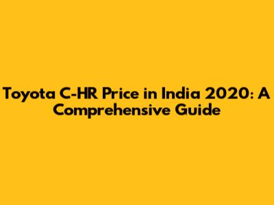 Toyota C-HR Price In India 2020: A Comprehensive Guide