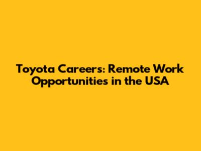 Toyota Careers: Remote Work Opportunities In The USA