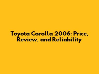 Toyota Corolla 2006: Price, Review, And Reliability