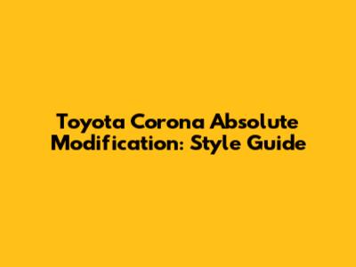 Hey guys! Are you a proud owner of a Toyota Corona Absolute and itching to give it a fresh, personalized look? Well, you've come to the right place! This guide is all about diving into the awesome world of Toyota Corona Absolute modification. We're going to explore everything from subtle tweaks to full-blown transformations, ensuring your ride stands out from the crowd. So buckle up, let's get started!
