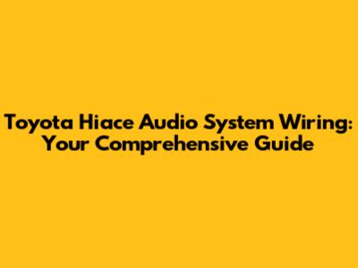 Toyota Hiace Audio Wiring: Install Guide
