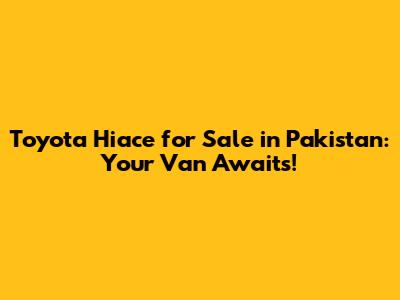 Toyota Hiace For Sale In Pakistan: Find Your Van