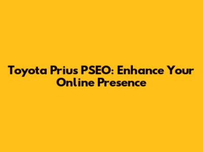Toyota Prius PSEO: Enhance Your Online Presence