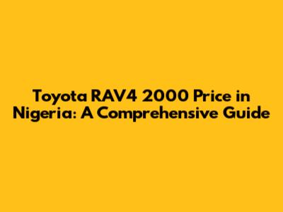 Toyota RAV4 2000 Price In Nigeria: A Comprehensive Guide