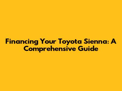 So, you've got your heart set on a Toyota Sienna, huh? Excellent choice! These minivans are super reliable, spacious, and perfect for families or anyone needing extra cargo room. But now comes the big question: how are you going to finance it? Don't worry, guys, we're going to break down all your financing options for a Toyota Sienna in this comprehensive guide. We'll cover everything from loans and leases to interest rates and credit scores, so you can drive off the lot with confidence.