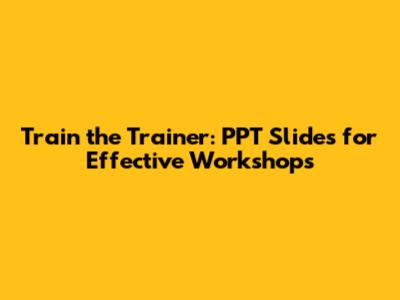 Train The Trainer: PPT Slides For Effective Workshops