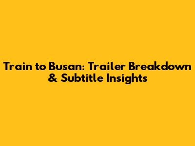 Train To Busan: Trailer Breakdown & Subtitle Insights