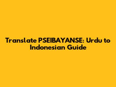 Translate PSEIBAYANSE: Urdu To Indonesian Guide