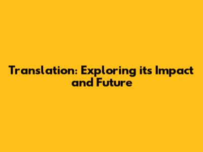 Translation: Exploring Its Impact And Future