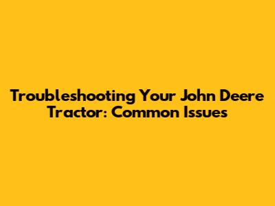 Troubleshooting Your John Deere Tractor: Common Issues