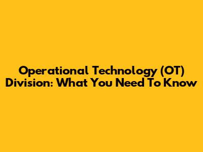 Operational Technology (OT) Division: What You Need To Know