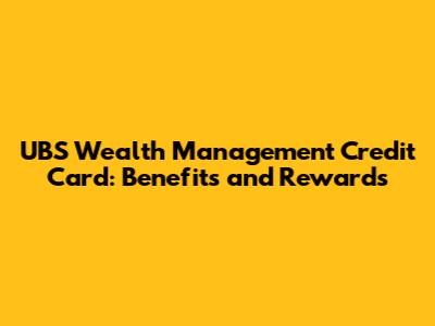 UBS Wealth Management Credit Card: Benefits And Rewards