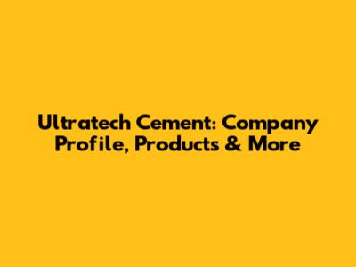 Ultratech Cement: Company Profile, Products & More