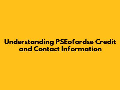 Understanding PSEofordse Credit And Contact Information