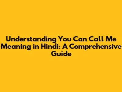 Understanding You Can Call Me In Hindi: A Complete Guide