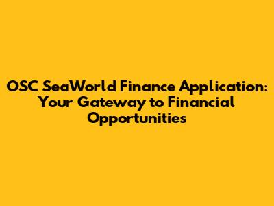 Hey guys! Are you looking to dive into the world of finance with OSC SeaWorld? Understanding the OSC SeaWorld finance application process is your first step towards unlocking a sea of financial opportunities. This guide will navigate you through every detail, ensuring you're well-prepared to make the most of what OSC SeaWorld has to offer. Let's embark on this journey together!