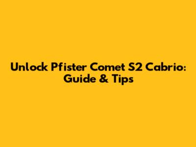 Unlock Pfister Comet S2 Cabrio: Guide & Tips