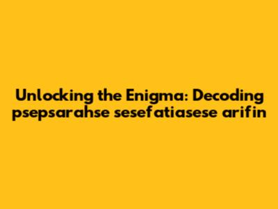 Unlocking The Enigma: Decoding Psepsarahse Sesefatiasese Arifin