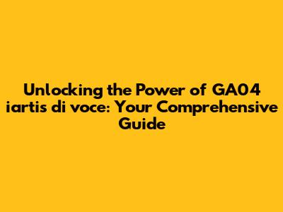Unlocking The Power Of GA04 Iartis Di Voce: Your Comprehensive Guide
