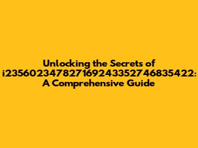 Unlocking The Secrets Of I235602347827169243352746835422: A Comprehensive Guide
