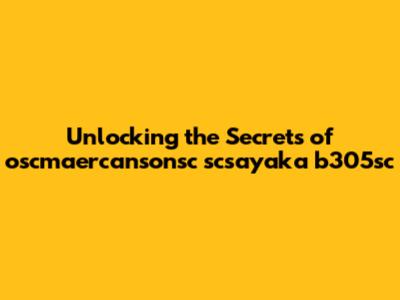 Unlocking The Secrets Of Oscmaercansonsc Scsayaka B305sc