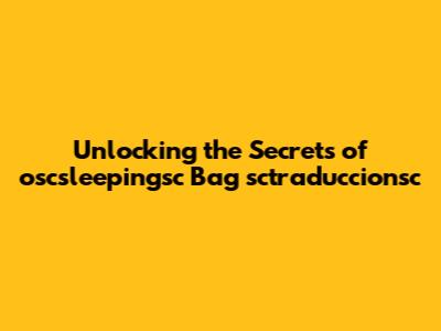 Unlocking The Secrets Of Oscsleepingsc Bag Sctraduccionsc