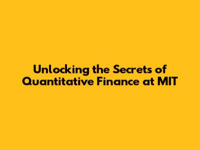Unlocking The Secrets Of Quantitative Finance At MIT