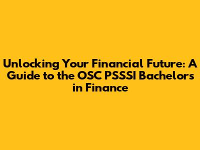 Unlocking Your Financial Future: A Guide To The OSC PSSSI Bachelor's In Finance