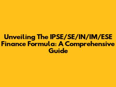 Unveiling The IPSE/SE/IN/IM/ESE Finance Formula: A Comprehensive Guide