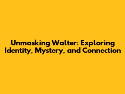 Unmasking 'Walter': Exploring Identity, Mystery, And Connection