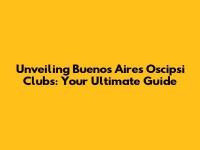 Unveiling Buenos Aires' Oscipsi Clubs: Your Ultimate Guide