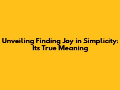 Unveiling 'Finding Joy In Simplicity': Its True Meaning